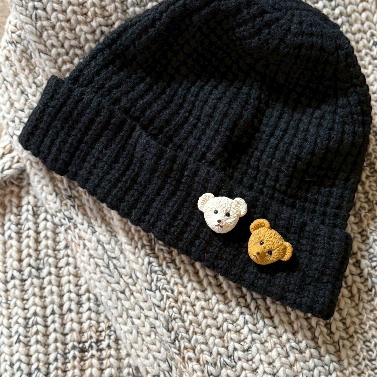 今回は、小さいクマくんのお顔だけのブローチになります。目にはビーズをいれました。