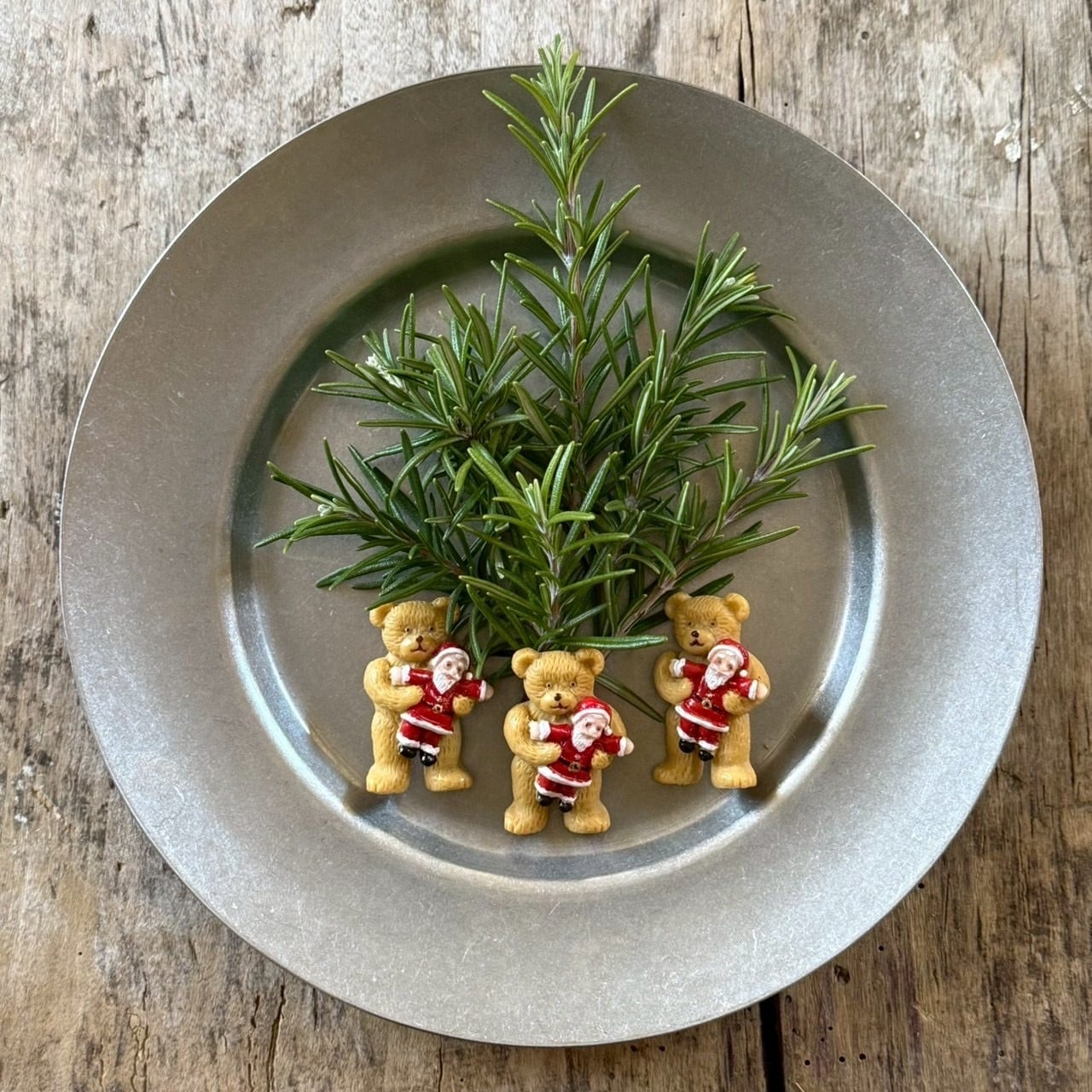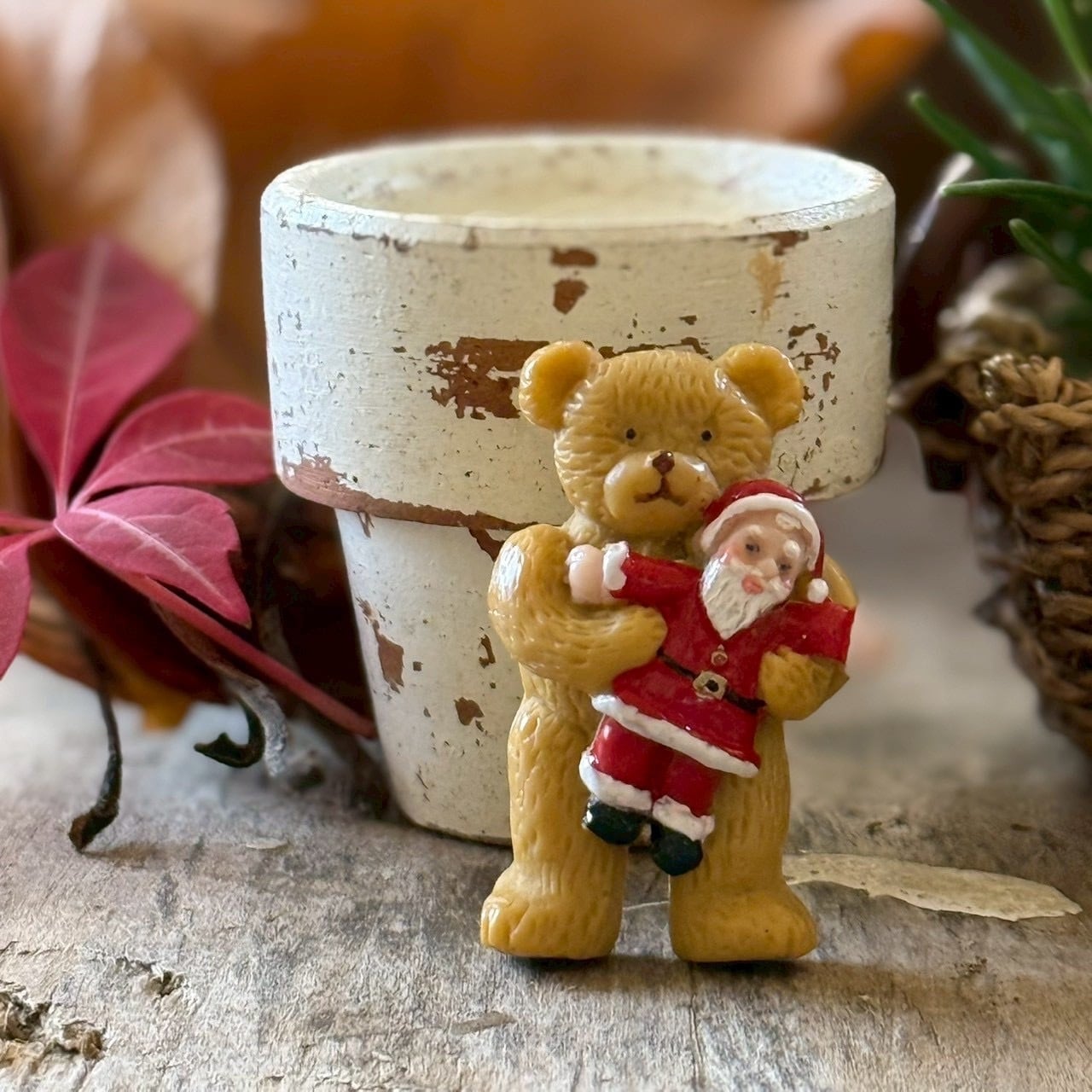 サンタさんを抱っこしたクマさんブローチ。