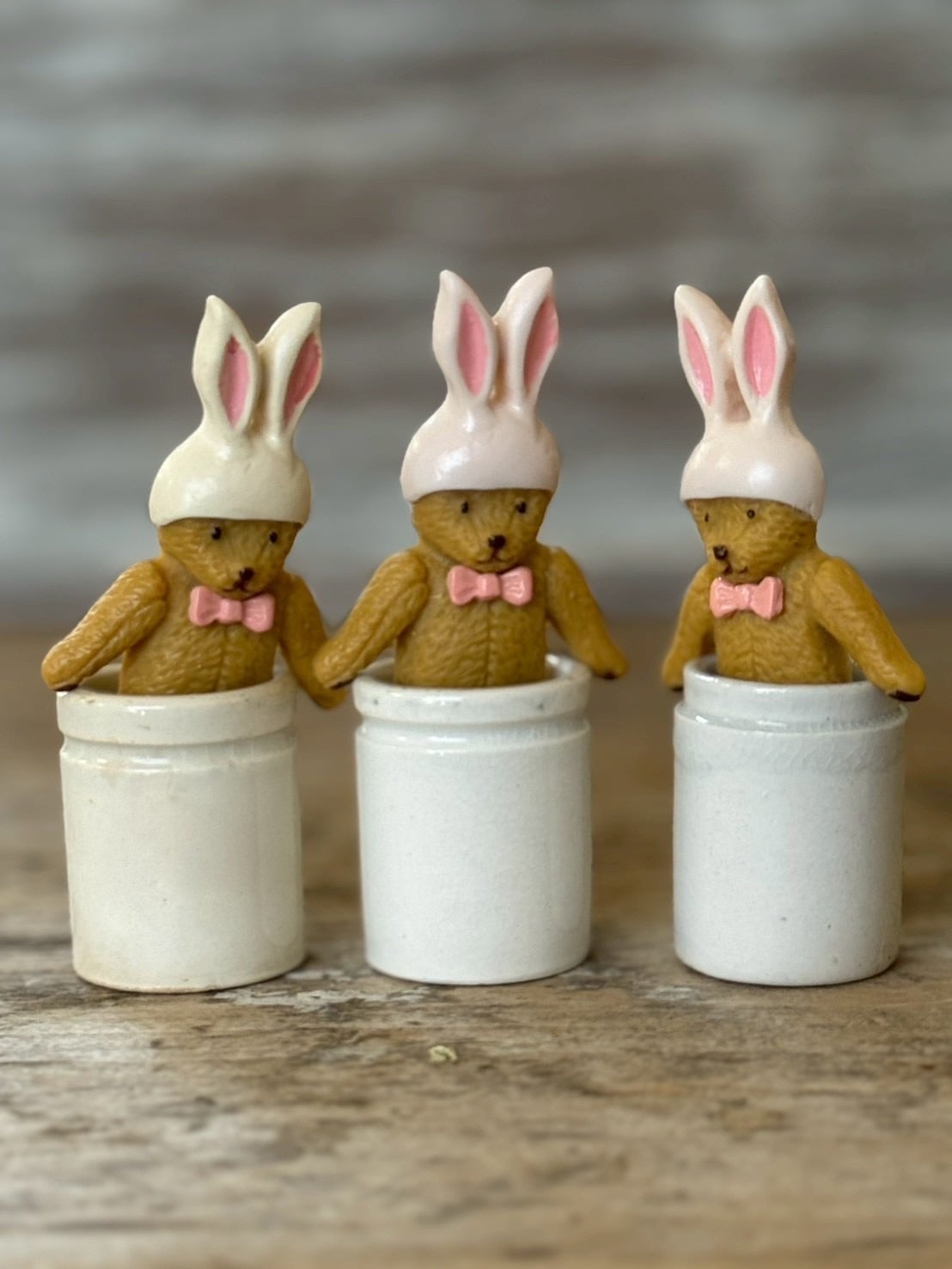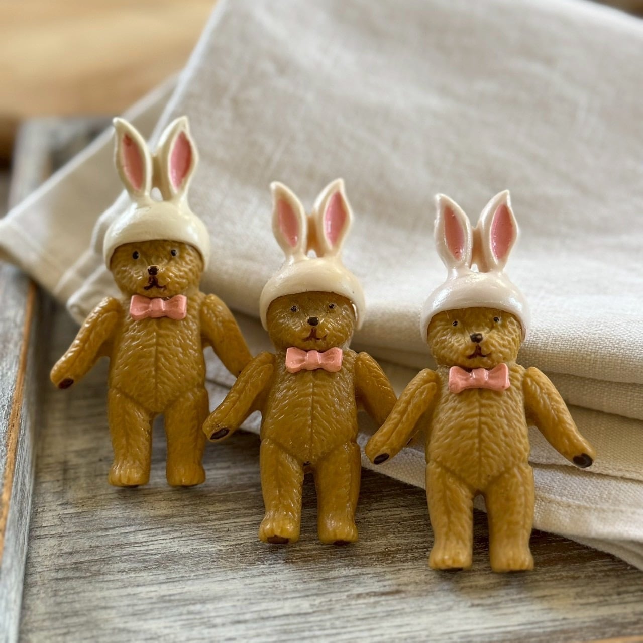 うさぎの帽子を被ったクマくんブローチの再販です。