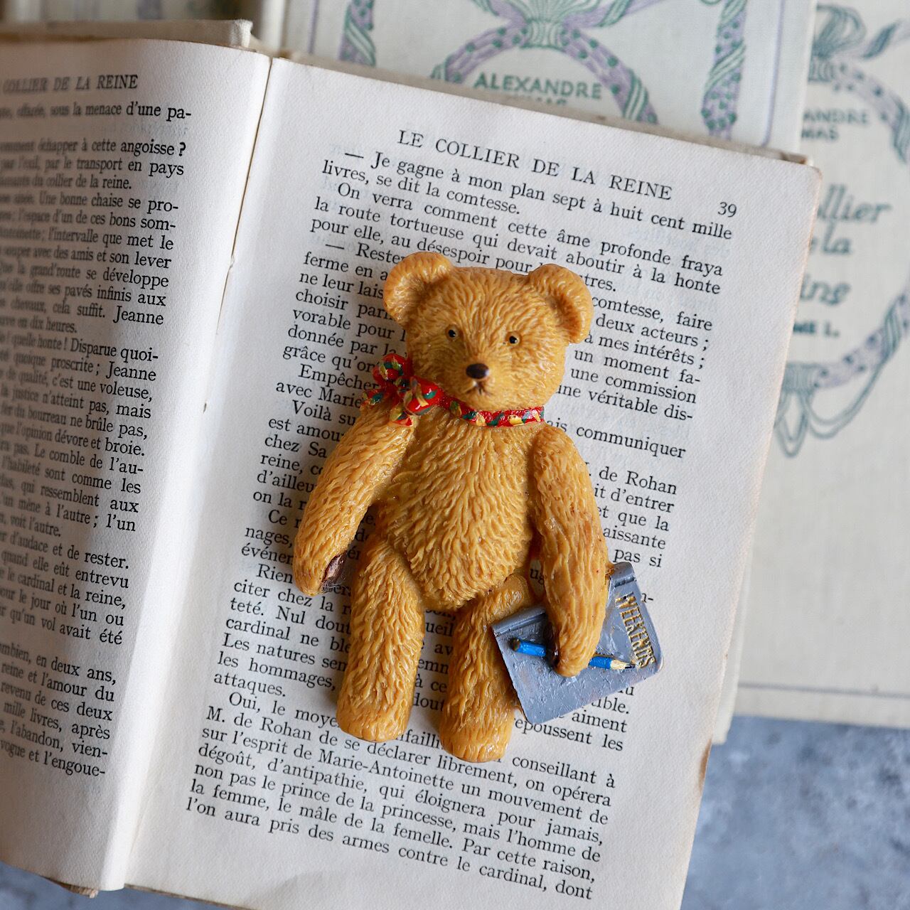 ノートとえんぴつを持ってるクマさん。WEEKENDSでは大きめのブローチになります。